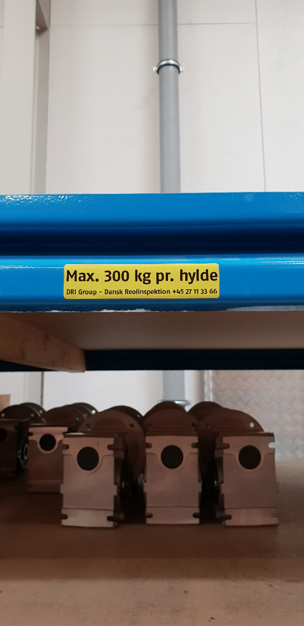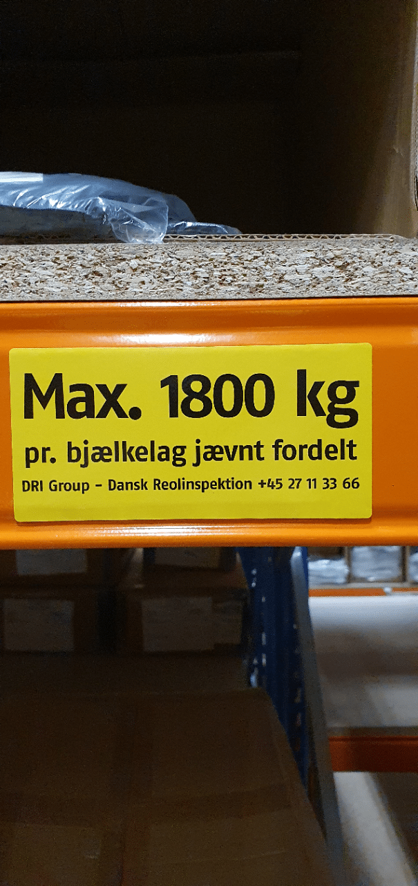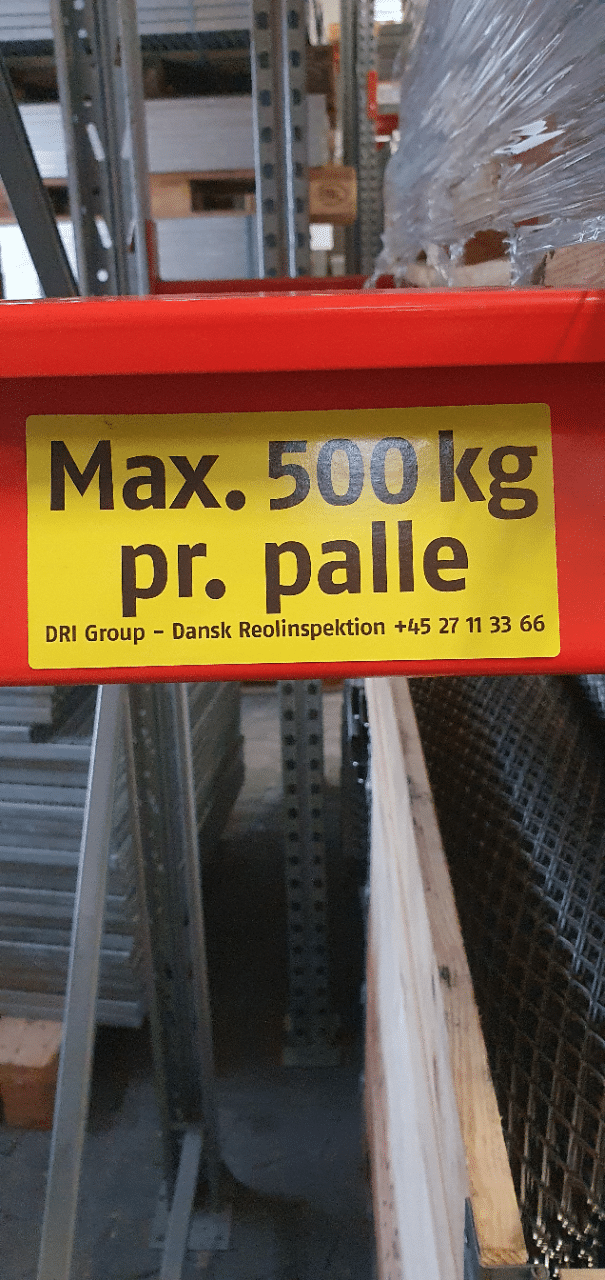 I henhold til lovkrav, er det af stor betydning at belastningsangivelserne ikke er misvisende opsat, men er angivet korrekt på reolerne.