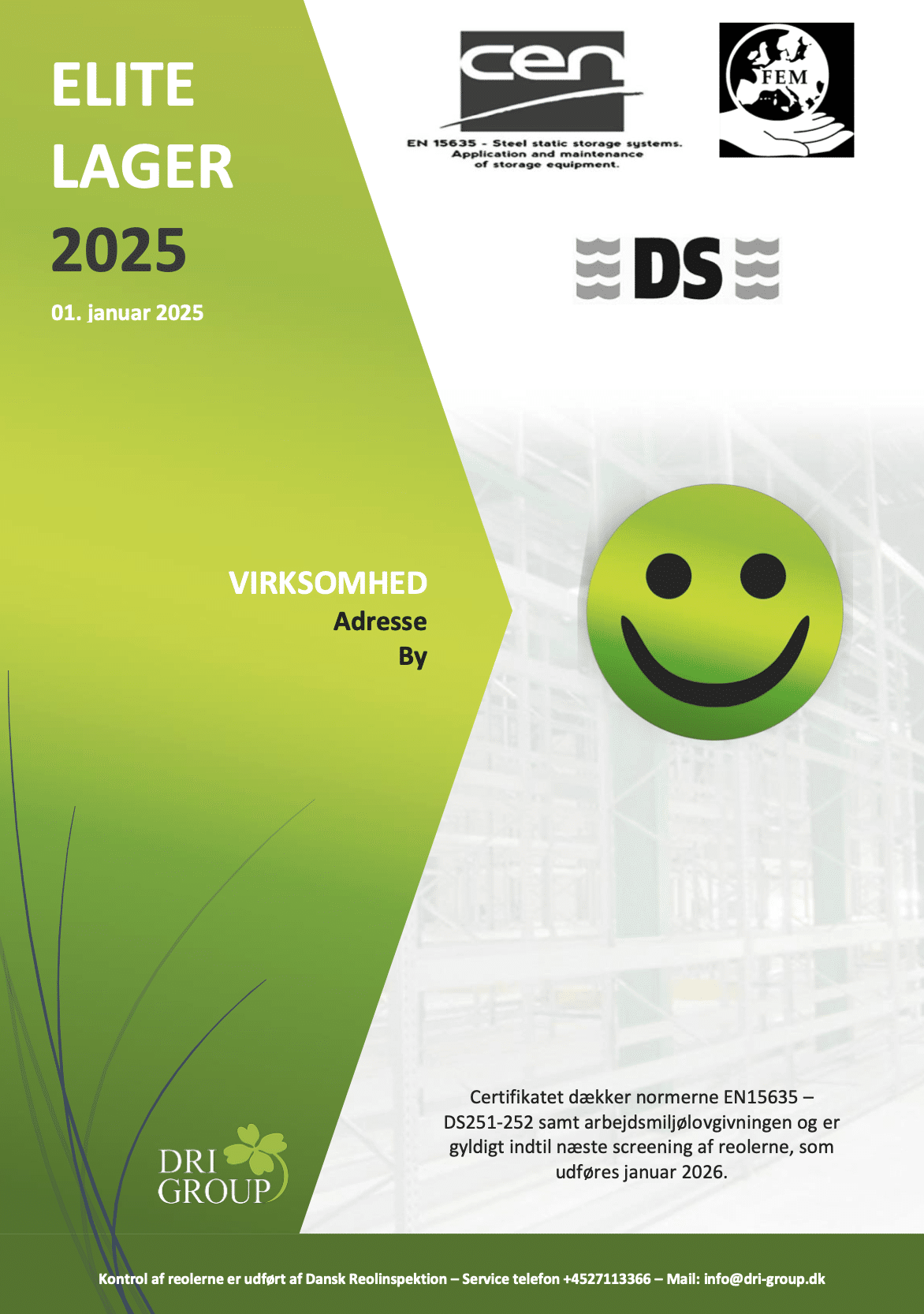 - Elite certifikat for udarbejdelse af de lovpligtige reoleftersyn.